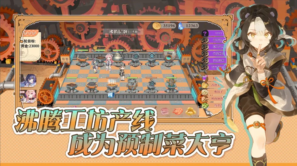 画风清新可爱的二次元经营类游戏,角色设计富有个性,多位美少女将在游戏中陪伴你逐步发展工坊事业。《预制菜梦工坊》以卡牌为核心玩法机制,三大核心体系相互配合,玩家可根据喜好构建不同流派策略组合。整体节奏轻松,具备良好的治愈氛围,适合碎片时间放松体验。