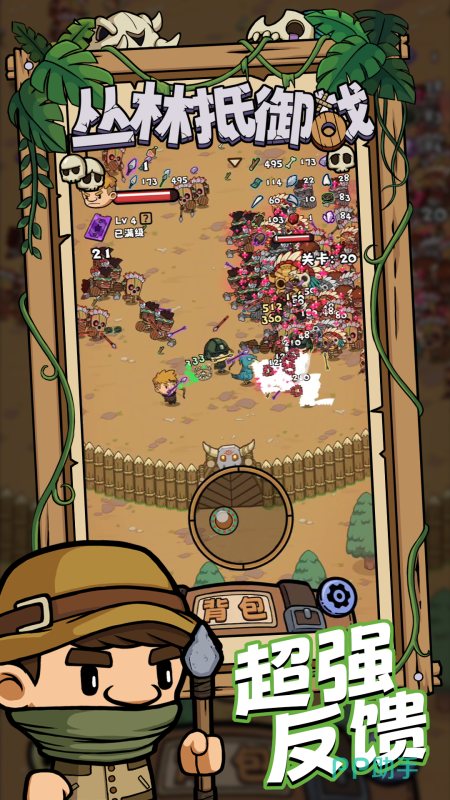采用竖屏操作模式,仅需一个虚拟摇杆即可完成全部操控,上手门槛低且反应灵敏。在《丛林抵御战》中,玩家将深入危机四伏的丛林地带,通过击败各类敌人生存下去,并收集资源用于强化角色能力。营地系统支持招募同伴并配置装备,提升整体战斗力。融合肉鸽元素的设计让每一次挑战都充满未知与新鲜感。