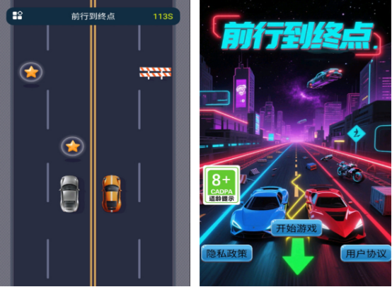 这是一款操作简洁但富有挑战性的赛车类休闲游戏,核心玩法是通过触屏控制车辆前进方向,力求行驶更远距离或在双人PK中率先抵达终点。赛道上布满障碍物与其他竞速对手,考验玩家的反应速度与操控精度。无论是单人闯关还是本地对战,都能带来紧张刺激的竞速乐趣,适合喜欢快节奏小游戏的玩家尝试。