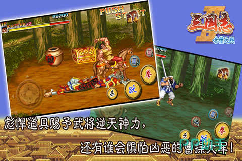 本作以赤壁之战为核心历史背景,采用粗线条的人物造型突出角色个性特征。游戏保留了街机时代标志性的横向卷轴推进方式,设置了两种不同挑战类型的关卡结构。以蜀国视角为主线,每章节末尾均会遭遇来自曹魏或东吴的重要将领作为Boss,每位敌将拥有独立的攻击逻辑与多样的战斗动作设计,增强了对战变化性。
