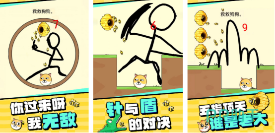 这是一款充满趣味的益智解谜游戏,拥有大量精心设计的关卡。每关都有一只需要救助的小狗,玩家需通过划线方式为其提供保护,避免其受到蜜蜂等危险因素的伤害。题目设计巧妙,部分挑战需要逆向思考才能破解,考验逻辑推理与空间判断能力。