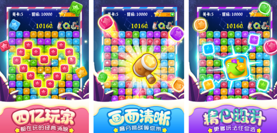 这款游戏以五彩斑斓的方块构成核心视觉元素,采用经典的点击消除机制。每一关都有特定目标,例如首关只需达成1000分即可通关,而到了第五关,分数要求则提升至1万分。玩家需通过观察并点击相同颜色的方块进行清除,一次性消除的数量越多,所获分数也越高,策略性与反应力缺一不可。
