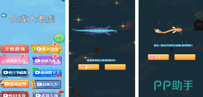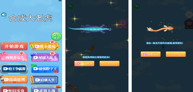 在中华传统文化中,龙象征着力量、祥瑞与突破自我的精神追求,而“鲤鱼跃龙门”的传说更是寄托了通过不懈努力实现质变的美好愿景。以合成进阶为核心玩法的小游戏正呼应了这一理念,玩家通过简单操作将低阶生物不断融合升级,逐步解锁神龙及其他神话存在,体验从微小到强大的成长旅程。以下为大家带来几款围绕这一主题设计的趣味合成类作品。