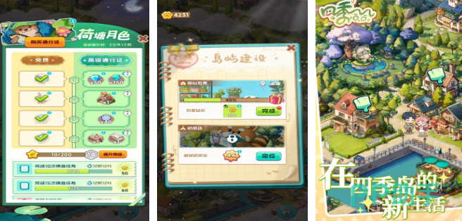 本作延续温暖治愈的美术风格,打造双时空经营体验。合成系统基于7×9动态格子展开,玩家拖动相同道具完成升级,解锁家具、食材等多个系列内容。部分高级物品需要发现隐藏配方才能合成,产出物可直接用于老宅翻新与四季岛建设,墙面颜色、家具布局均可自定义,实现成果即时可视化的满足感。
