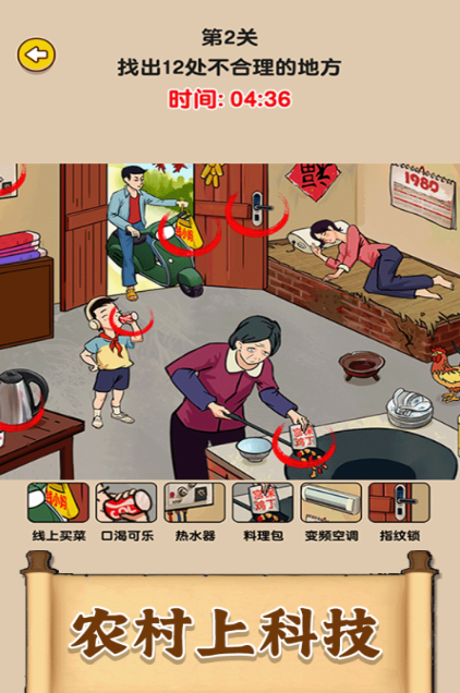 本作巧妙融合幽默元素与找茬机制,每一幅图看似合理却暗藏笑点破绽,令人忍俊不禁。除了常规找不同,还加入了破案推理、危机救援等多样化玩法,增强可玩性与沉浸感。关卡采用线性解锁模式,必须完成当前章节才能进入下一阶段,难度逐级上升,助力玩家循序渐进地提升注意力、分析力和抗压能力。
