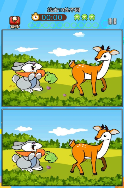 游戏中汇集了大量高质量图像资源,包括动物、人物及自然风光等多种题材。每关呈现两幅几乎相同的图片,要求玩家在限定时间内找出所有细微差别。时间压力增加了挑战性,促使你更快更准地做出判断。为避免因卡关影响体验,系统内置提示机制,帮助玩家平稳过渡难关,保持游戏积极性。