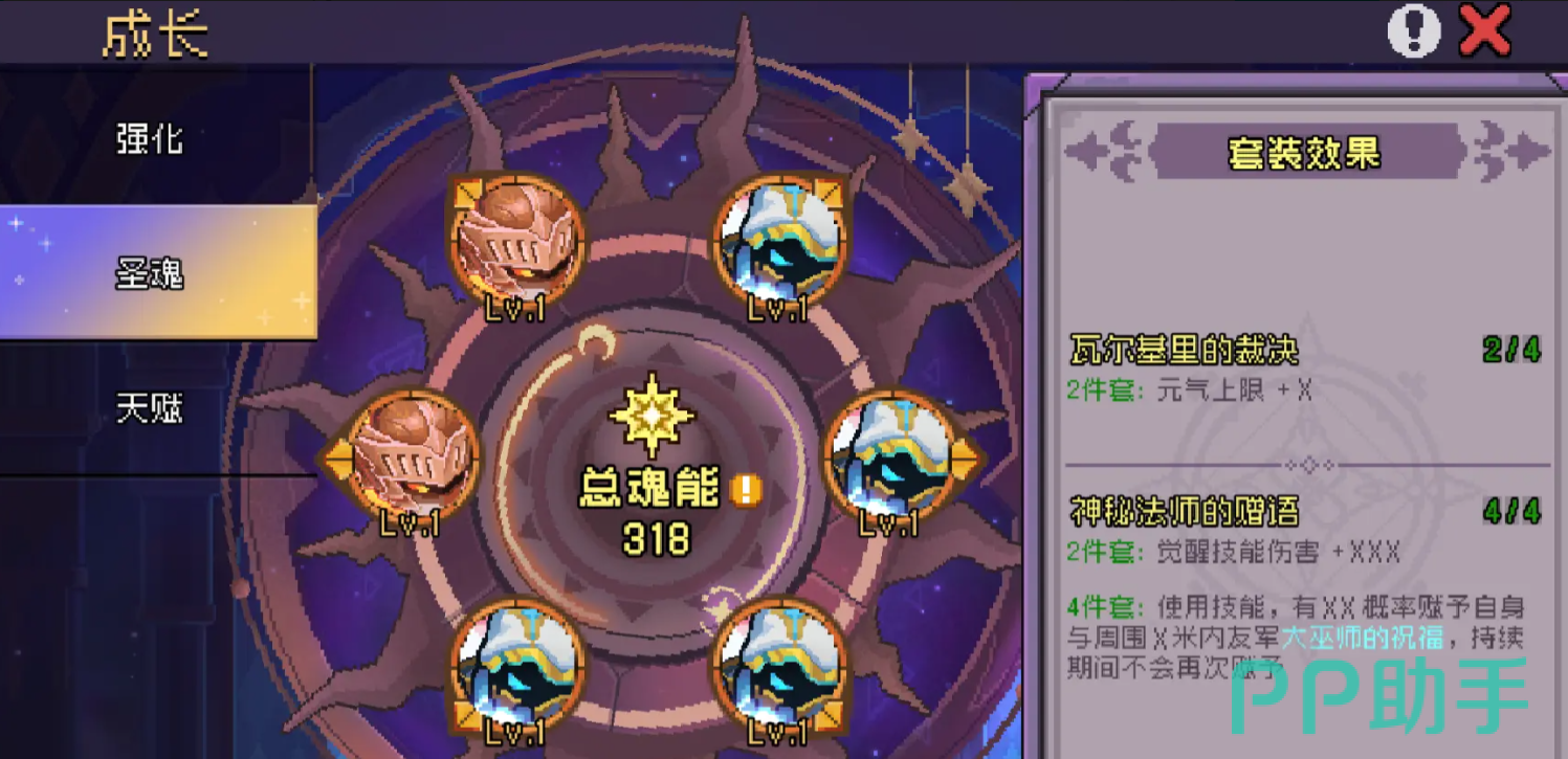 以上就是关于《元气骑士前传》圣魂系统的完整说明。合理配置圣魂组合不仅能大幅提升基础属性,还能激活强力套装特效,显著强化战斗表现。建议玩家们根据职业特性与战斗需求,科学搭配圣魂方案,最大化发挥其战略价值。