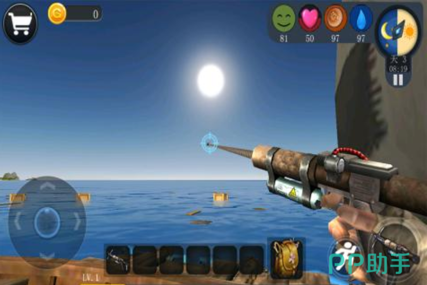 该游戏模拟了海难幸存者的孤岛式生存状态,主角被困于一片漂浮的木筏之上,随波逐流。海水会推送诸如树枝、塑料碎片等可用物资,玩家需操控木筏靠近并收集,用于扩建平台和加固设施。同时要管理角色的饥饿值、水分摄入以及心理状态,数值过低将触发负面状态。可通过制作简易工具捕捞小鱼、净化海水,并提防随时可能出现的鲨鱼攻击,确保在茫茫大海中持续存活。