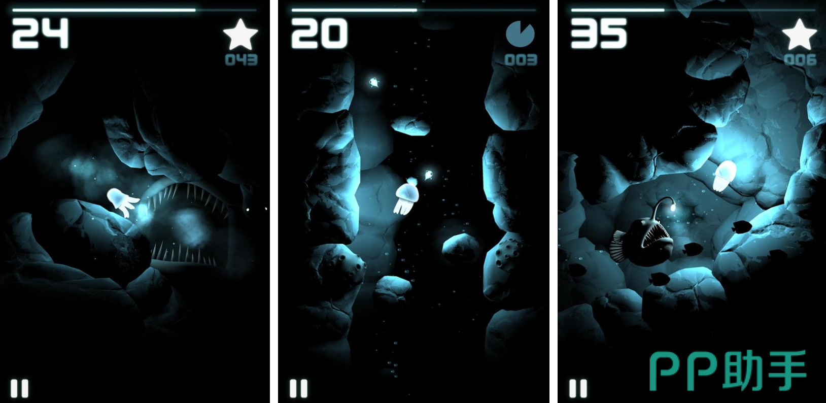 这是一款氛围紧张的生存向休闲游戏,玩家将在黑暗幽邃的海底环境中求生。整个场景几乎完全漆黑,仅依靠角色自带的光源照亮前方路径,但光线会随时间逐渐衰减。为了维持照明,必须主动搜寻能量源进行补给。与此同时,潜伏在阴影中的未知生物随时可能发动袭击,哪怕是看似静止的礁石也可能突然变为张口吞噬的怪物,考验玩家的警觉与反应能力。