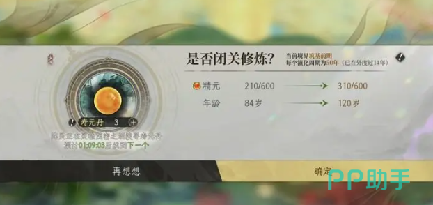 此时就需要使用寿元丹来延长寿命上限。寿元丹每4小时自动回复1个,离线期间同样计时,但最多仅可储存10个,超出部分不会继续生成,建议及时使用以免溢出。同时,精元存在600点上限,在开启新一轮演化前应确保将其完全消耗,否则会造成资源闲置。理解这两项资源的限制机制后,便可科学安排每日修炼节奏,最大化将寿元转化为精元,再转为灵气收益。
