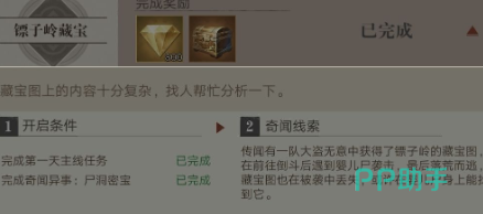 第一条线索到手后,接下来需着手收集第二条线索。这要求玩家角色等级达到30级,并完成与之关联的镖子岭地区主线任务。只有在主线完成后,才会激活新的剧情节点。
