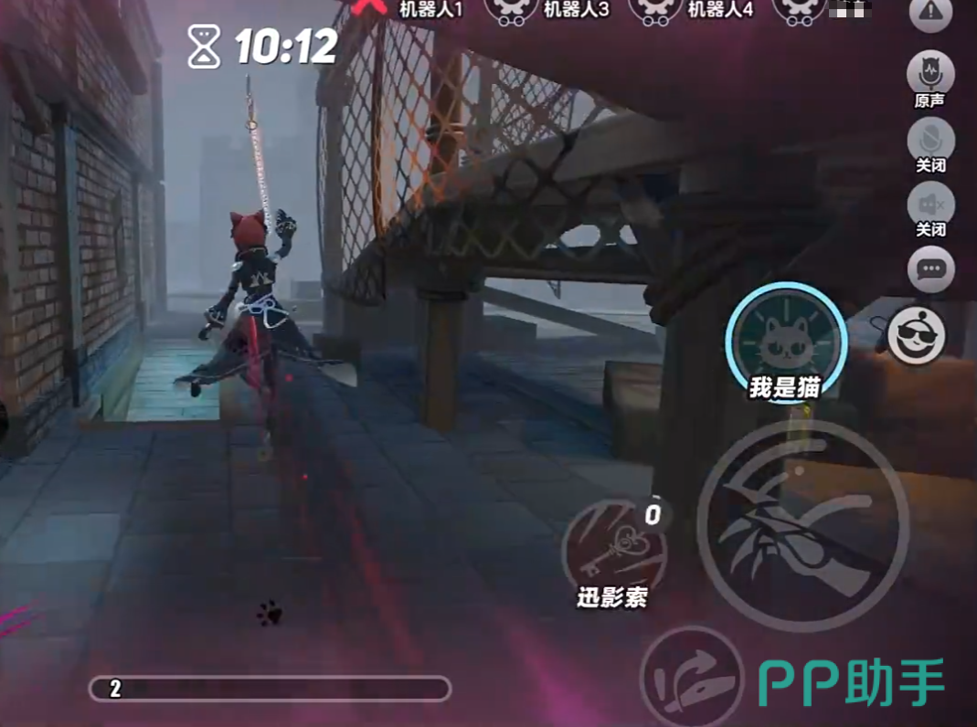 衍生技能“掠影”可在脱离影索后使用,利用原有动量持续飞行。当处于怪盗形态时,玩家可借助“我是猫”技能在空中完成变身。被动技能“怪盗伪装”使该角色在远离对手视野或超出观测范围时,不会触发揪揪感应与红光预警。同时,在未被察觉的状态下,每秒可稳定积累暗影能量;若完全脱离敌人视线,能量获取效率将进一步提升。