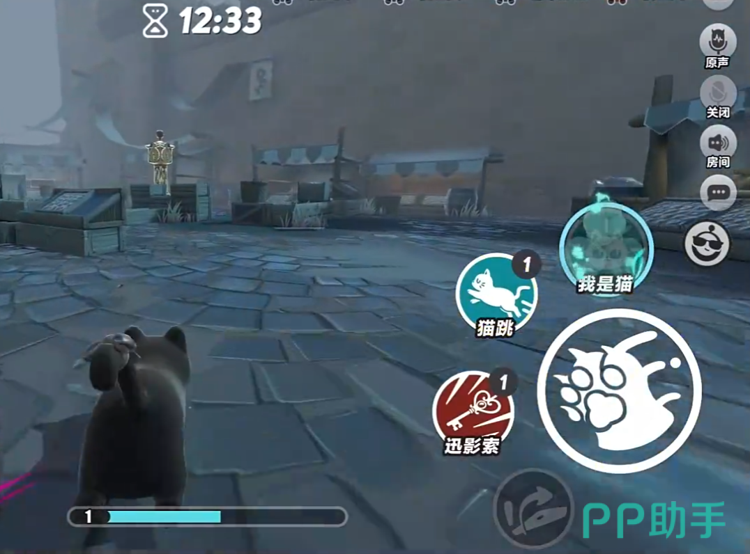 当暗影能量积满后,即可激活“我是猫”转化为黑猫形态。在此状态下,角色无法被揪揪感应探测到,且动态视觉能力显著增强,能量消耗较低。一旦能量耗尽,将自动恢复为怪盗形态。在合作模式中,该特性还能降低队友的揪揪感应覆盖范围,提升隐蔽性。