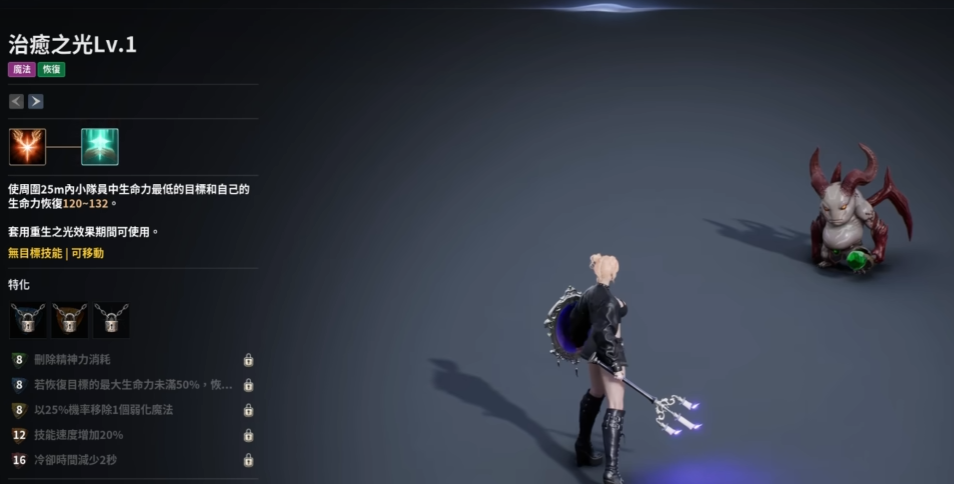 然而,在角色成长过程中,许多主线任务需要独立完成,因此奶妈也需要具备一定的输出能力。虽然治疗技能数量有限,但实际奶量表现充足,建议初期仅学习1至2级用于应急即可。优先投资于输出类技能的升级,并积极推进绿色支线任务以获取天赋点数。积累一定数量后,可前往吉凯尔系统强化输出属性,例如选择伤害增幅类天赋,直接提升5%输出能力,对顺利完成前期副本非常有帮助。