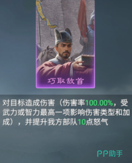 巧取敌首在造成伤害的同时,还能使我方全体单位获得10点怒气值。这一怒气回复效率接近顶级橙色辅助技能鼓角齐鸣,适用于各类辅助角色,尤其在法术输出队伍中能显著加快大招循环节奏。
