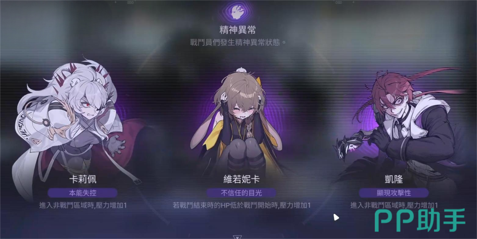 在蓝壶星球上可能出现三种异常状态:其一是卡莉佩德本能失控,当进入非战斗区域时,队伍压力值将上升1点;其二是纬若妮卡德不信任目光,在单场战斗结束后若角色生命值低于开战前,则压力增加1;其三是凯隆展现攻击性,同样在进入非战斗区时触发压力+1效果。每种异常都需要针对性地调整行动策略,以控制压力累积,维持团队稳定性。