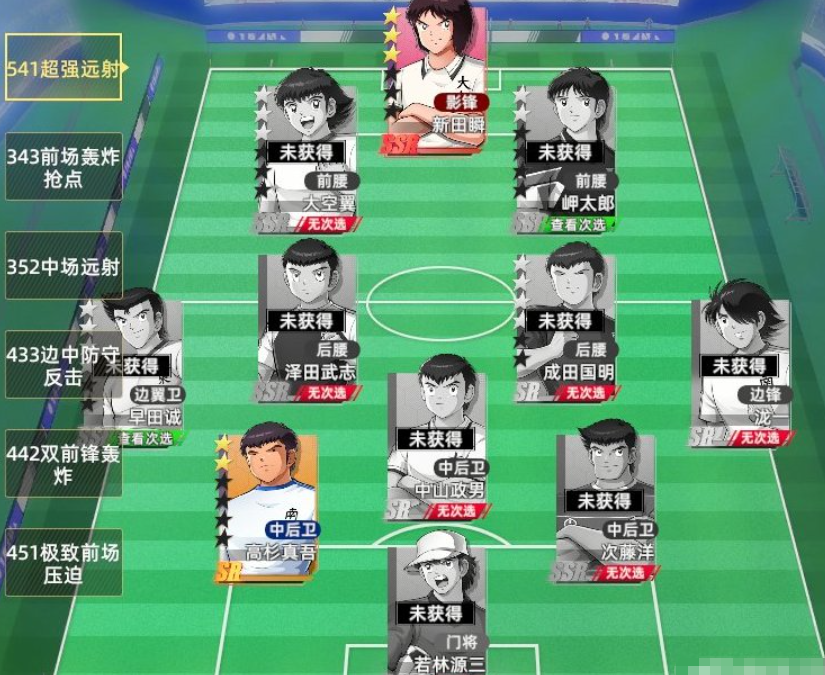首先为大家介绍的第一个阵容就是太空翼、岬太郎、泽田武志的搭配,这样搭配的时候,大家用一个阵型就是5-4-1,这个阵型搭配阵容效果来说,达到的循环机制是最好的,阵容当中主打的就是中场的球员,他能够带来远射进攻的能力,这样的话就保证前期大家能够快速进行进攻,前后腰定位上面的球员,他们基础都是可以带来远射这类效果,远射在射门的时期,其实在得分的情况上面是需要一定数值来进行支撑的,所以阵容整体效果来说,大家要以中场的球员为主要的核心,他们阵容搭配成功之后,只要远射进攻被针对大家,这也可以改变自己的战术,利用前腰球员他们足够的强点效果来跟中锋的建设角色进行搭配。