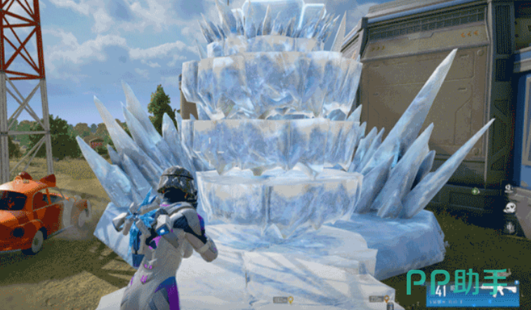 绝对零度的被动技能允许她通过点击跳跃键,在脚下生成一块冰晶平台,实现短时间抬升自身位置。若长按跳跃并配合移动操作,则可连续铺设多段冰阶,形成上升通道,极大增强了地形穿越能力。她的主动技能“冰川喷涌”可在指定开阔区域召唤出一座大型冰川掩体,顶部配备单向护盾,支持快速点击直接在当前位置生成掩体,并使角色自动跃至顶部平台。