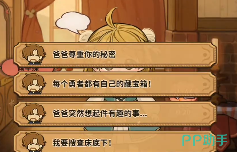 此外,在家庭餐厅场景中与“懒散的士兵”角色互动时,也会激活“以身作则”相关剧情。此次共包含四个分支选项,虽然都会增加女儿对父亲的好感印象,但各自侧重的属性方向不同。玩家应结合自身培养目标,如希望发展智慧型、勇气型或亲和型人格,来选取最契合的回应方式。