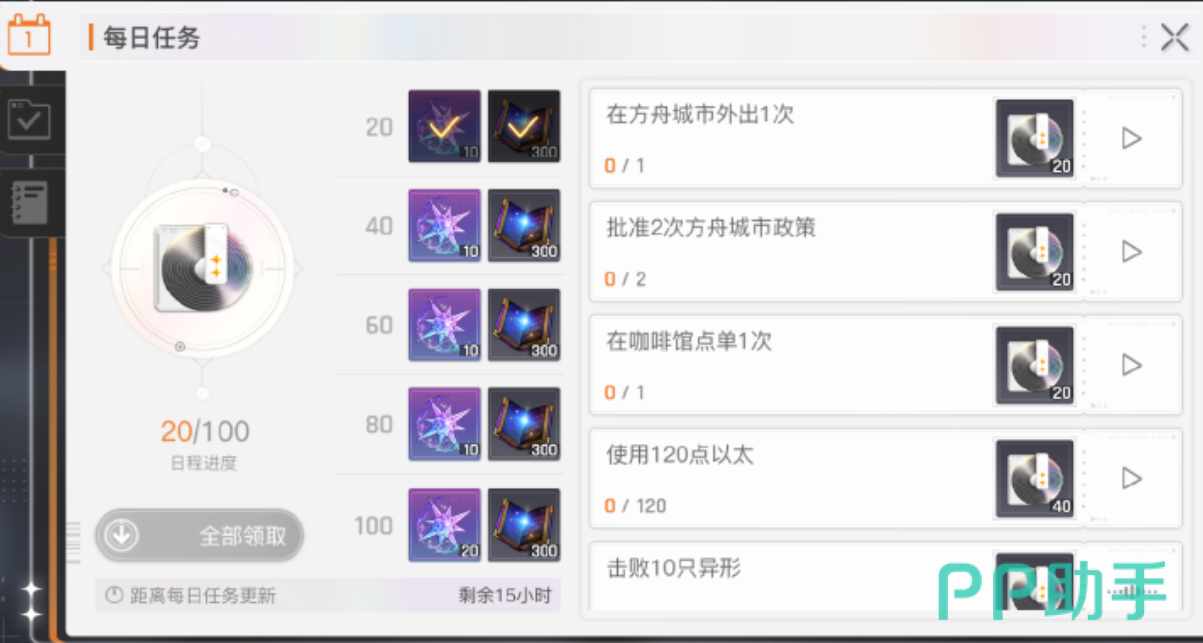 就副本而言,建议玩家优先刷取角色升阶素材以及每周限定三次的挑战。尤其是50级之前的新手玩家,应该优先刷取金币副本,因为后期升阶的时候金币会非常短缺。对于记忆碎片的刷取,建议等到50级之后再进行,此时角色能力提升之后刷取效率会更高。常驻战斗任务也可以作为经验的一个来源。每个任务完成之后都可以获得200点的经验,这些任务一般都会在方舟都市的政策室里被触发。虽然收益一般,但是随着任务的进行,完成这些关卡仍然是增加经验获取的有效途径。
