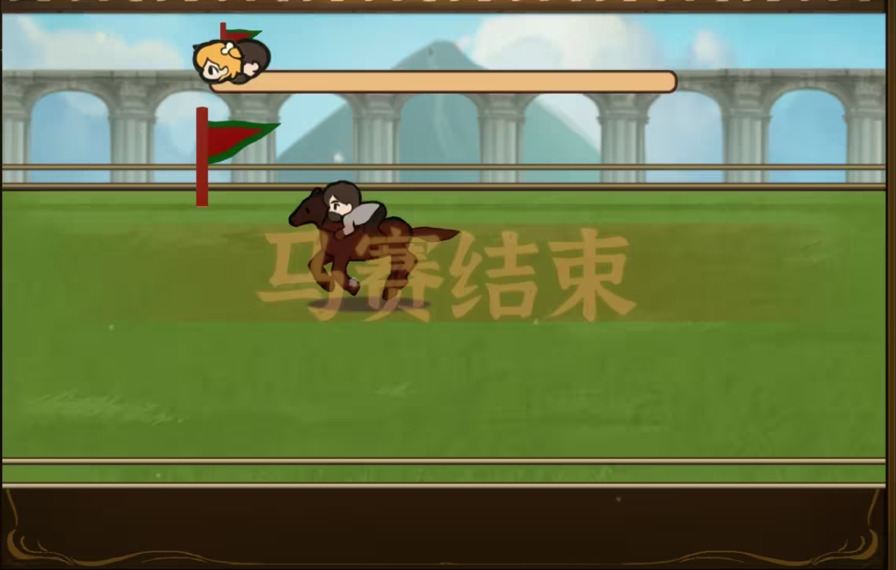 赛马比赛主要有两种,【新马赛】和【骏马赛】。新马赛以速度为关键,保证马的速度足够快才能在赛道上领先。利用赛道中的加速机会,可以明显提高胜率。速度超过200的马匹在加速两次之后基本就可以获得比赛胜利了。玩家在赛前还可以用刷子去更改马匹的外形评分,虽然新马赛重速度,但是颜值高的马看起来也更舒服。