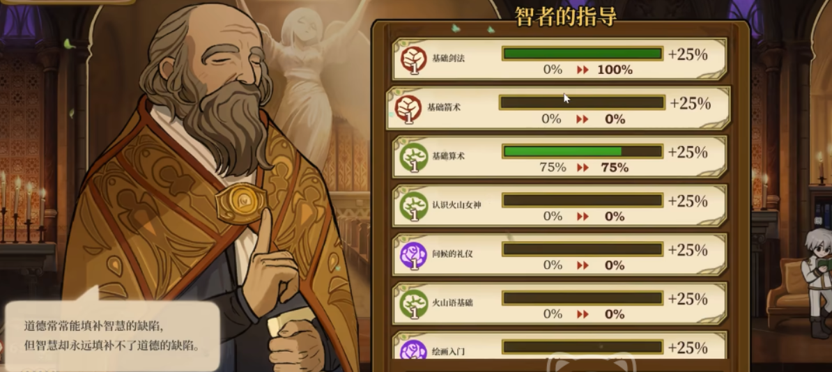 智力属性的培养要靠学习和实践相结合。玩家可以通过购买书籍、摆放书籍来使女儿在闲暇时间里阅读积累智慧,安排烹饪、化学实验或者拜访智者等互动任务都是提高智力有效的方法。在课堂上选数学课或者历史课或者逻辑训练课,可以让孩子很快在短时间内得到智力点数,为后面进行一些比较难的结局选择比如【火山女神】、【勇者】等做好前期的铺垫。