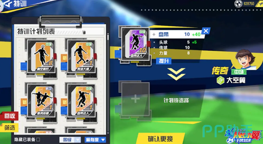 每张特性卡都会明确标注其所提供的词缀类型及具体数值加成。例如,若想强化传奇球员太空翼的能力,因其本身具备出色的带球技术,推荐为其配备提升盘带属性的特训卡。此举不仅能进一步放大其优势,还能在实战中创造更多进攻机会。除了基础装配外,还可通过升级特性卡来持续提升球员整体战力。