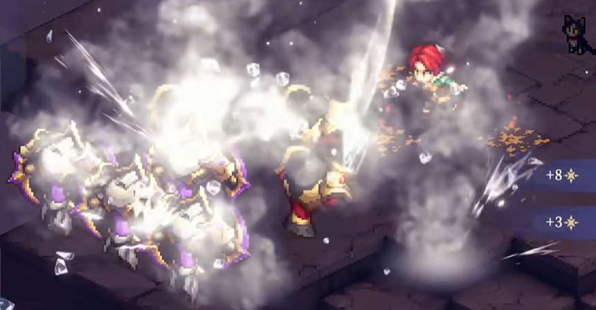 她的核心被动名为“元素涌动”,具备双重优势:一是完全免疫燃烧与冰冻地形带来的负面状态;二是在行动结束时若处于对应属性地格,可获得物理与魔法双护盾。此外,当释放冰系技能而目标位于燃烧区域,或使用火系技能攻击处于冰冻格的敌人时,将触发特殊效果“律动”,造成附加伤害并提升其受到的伤害比例。