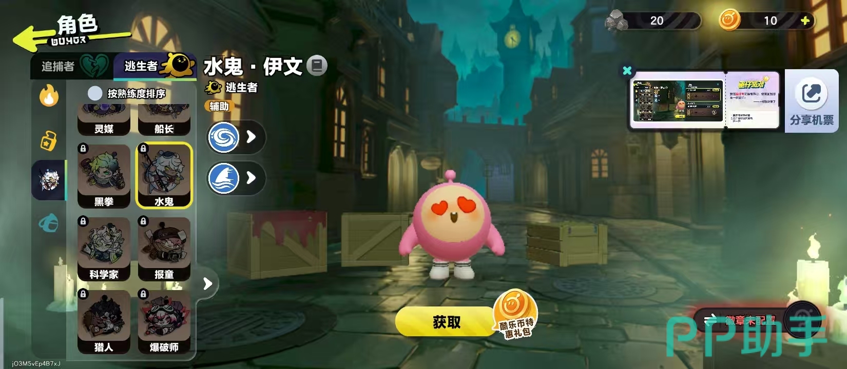 目前获取水鬼的主要途径是在游戏商店的娱乐玩法分类中,进入逃出惊魂夜专属模块进行兑换。兑换所需货币为酷乐币,而酷乐币的获取方式多样,无论是组队参与对战还是完成指定任务,都能轻松积累。成功解锁后,玩家即可体验这一兼具辅助与控制能力的独特角色所带来的战术变化。