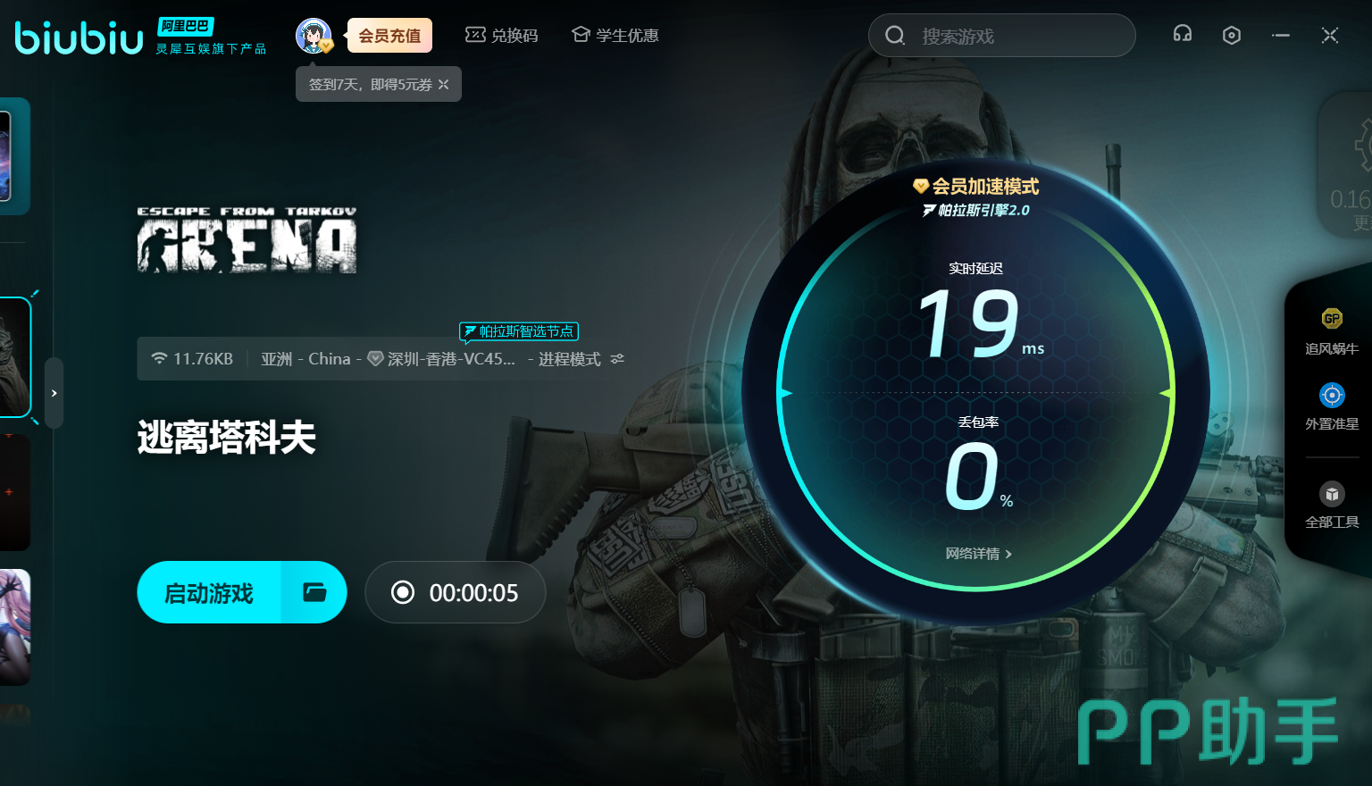 在用户体验方面,biubiu加速器同样表现出色。新用户注册即可领取24小时免费加速时长,无需付费即可体验流畅对战;输入兑换码【biubiu不卡顿】,新老用户均可额外获得72小时加速时长。对于新手而言,叠加福利后总计可达96小时免费使用时间,足够充分探索《逃离塔科夫》的各大地图区域,安心试用加速效果。