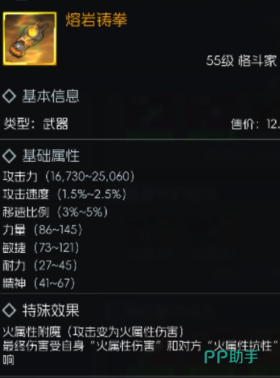 后者“熔岩铸拳”则赋予格斗家火属性攻击能力,依据火属性伤害加成与敌方火抗弱点进行数值放大。其特殊效果可在攻击时削减目标30%的防御力,持续时间长达10秒,极大提升了团队整体输出效率。这两件装备需通过远古打造系统或遗迹宝库刷取,获取难度较高,但综合性能远超普通金色与史诗级武器。