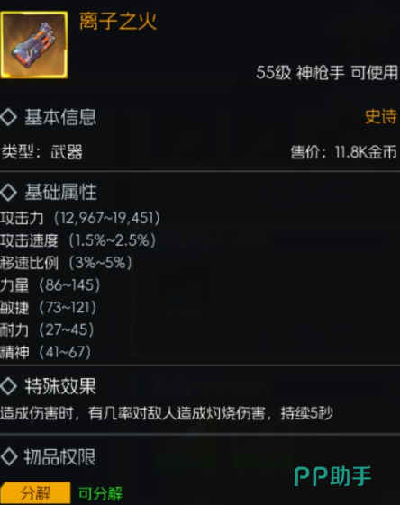 若追求更强性能,可考虑史诗级武器“离子之火”,专为神枪手设计。其核心优势在于触发灼烧效果,使敌人在受到攻击后持续承受伤害,持续时间为5秒。这种DOT(持续伤害)机制配合高爆发技能,可在短时间内显著提高总输出量。目前该武器仅能通过挑战深渊副本获取,无法通过打造途径获得,因此更具稀有性。