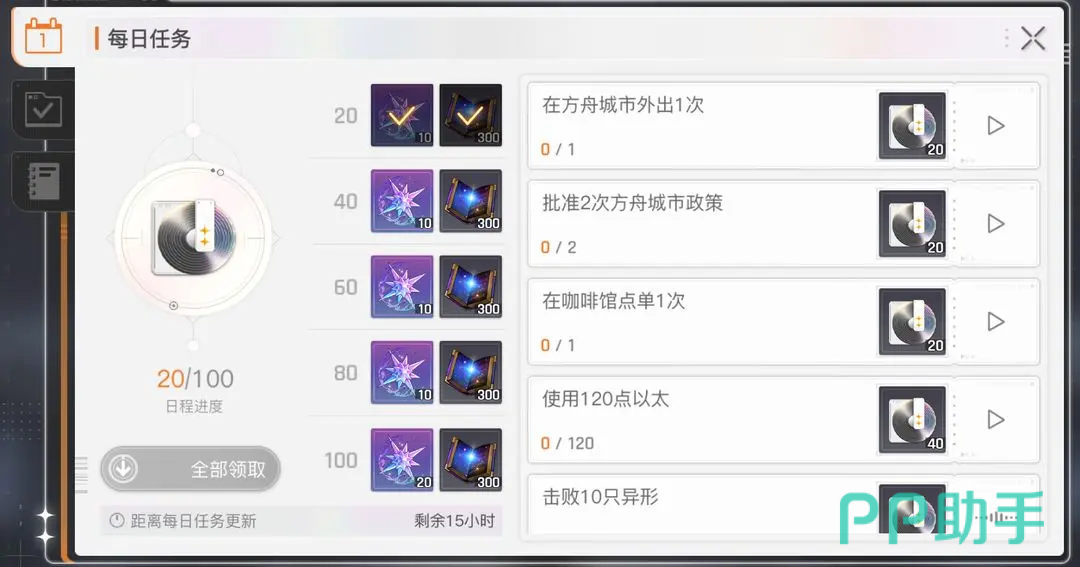 日常任务是玩家每天必须要完成的任务每天凌晨2点刷新,保证玩家每天在游戏中可以稳定的获得經驗。玩家只需要获得100点积分就可以获得全部的奖励,一般情况下,通过登录游戏进行几场模拟战,把体力消耗到约120点就可以完成任务要求。操作简单,可以获得约1500点经验值,对新手和中期玩家来说,这部分经验值可以大大加快舰长等级的提升速度。
