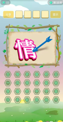 该游戏根据目前传统的喊自己结构作为出发点,谜题从一开始的简单,后续难度会增加,一开始你会遇到一些基础题,熟悉以后就会接触到结合成语的典故谜题,游戏界面比较简洁,也没有什么多余的广告,每道题下方也有提示的按钮,不能让大家因为关卡而失去快乐,解密的过程还可以了解汉字的小故事。