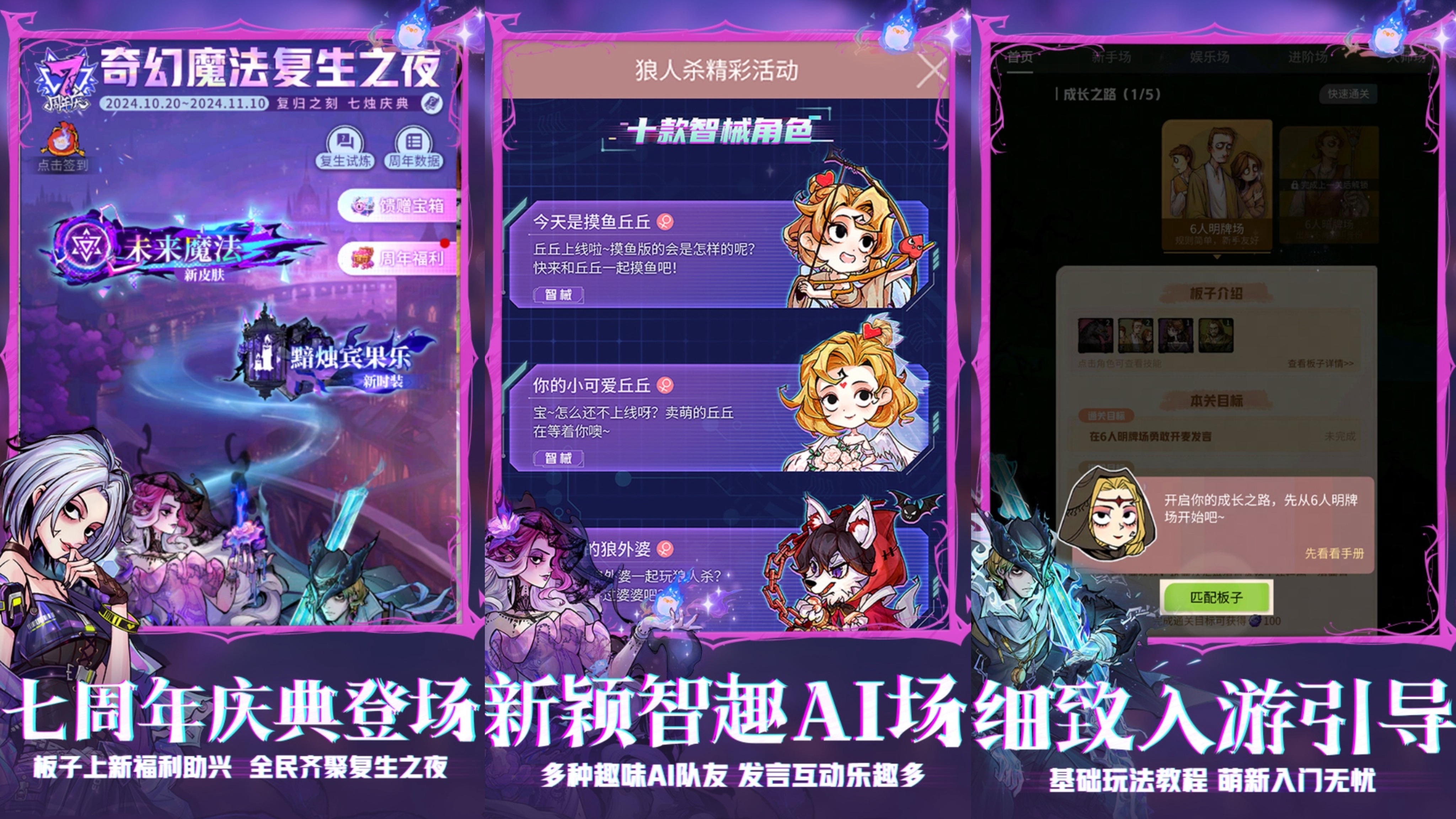 《狼人杀》是一款推理社交互动手游。游戏主打就是一个交友互动玩法,一秒就能匹配队友,开启精彩的狼人杀推理之旅。而且游戏还有完整的新手引导教程,从6人新手局,到10人中端局再到12人进阶局都可以满足。另外,游戏还上线了海量的主题皮肤,城堡,村庄还有英伦风小镇等多种特色主题等你来体验!
