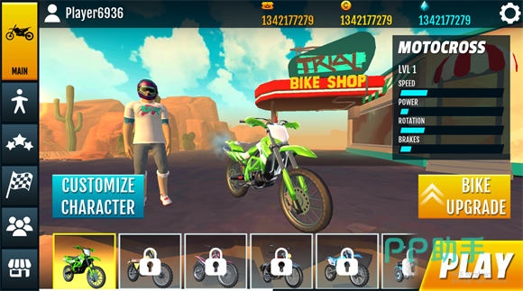 每一辆摩托车在外观的设计上都是很独特的,经过无数挑战,任务完成将会为我们赢得更多的金币,这些都可以前往商店中购买改装车辆所需要的。各种配件,打造出一款专属的摩托越野车,驰骋在各种难度的赛道上,都是对玩家技术的挑战。想要获得胜利,就要尽可能的赢得更多的玩家,让自己的排名更加靠前。