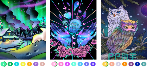 本作是专注于填写颜色的单机休闲类手游,玩家要尝试点击画面中不同地点的数字,然后选择合适的颜色进行填充即可完成任务,这款互动解谜类的填色游戏运行速度很快,超级多的模板加持无疑让这款APP观赏性更强,填色高手们可以尽情施展自己的审美进行填色,超前的填色闯关理念帮助大家放松自己。
