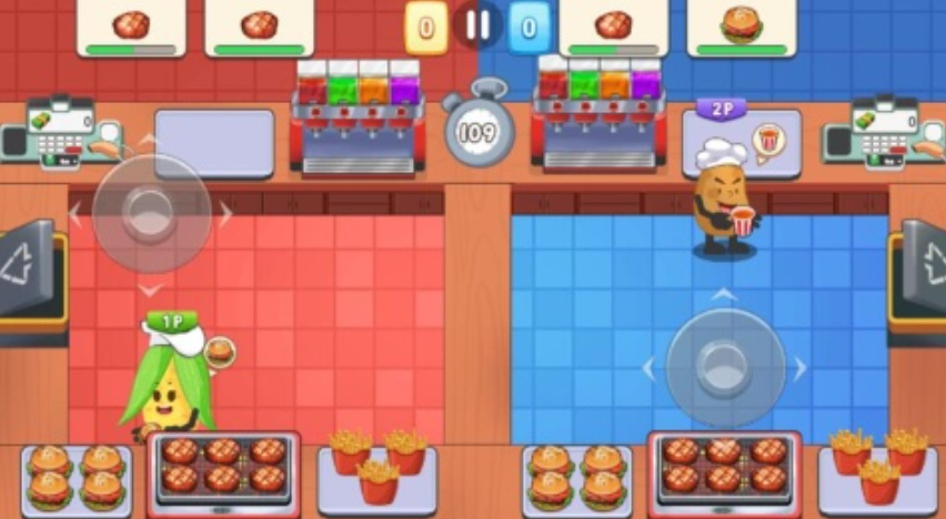 这是一款料理pk类小游戏,玩家需要根据客户提出的需求来准备餐品,只有快速地、连贯地交餐才能获得更高的金币收入。在料理的途中需要小心突然出现的各种障碍物,如果一不小心碰到了有可能会导致移速降低、食材丢失。在游戏内既支持双人合作,也可以双人pk,玩家们可以一同合作制作食材,体验分工合作的乐趣,也可以进行1v1对决,看看谁才能做得又快又好。