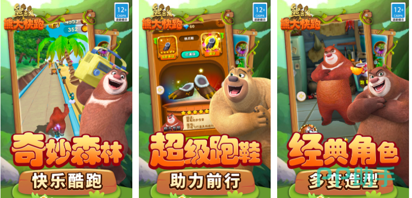 这是一款以经典角色熊大为主角的横版跑酷手游,操作简单易上手,适合各年龄段玩家。游戏中设有多种辅助道具,帮助角色在复杂地形中快速前进,同时还有丰富的任务系统提升可玩性。整体画风延续了动画片轻松搞笑的特点,搭配森林场景与卡通渲染技术,视觉表现生动活泼,带来极强的代入感。