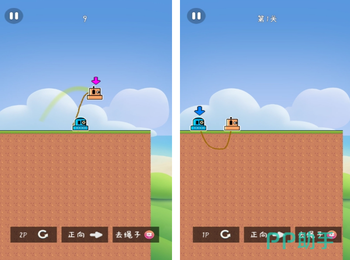 这是一款操作难度较高的双人闯关小游戏,两名角色由一根绳索连接,行动相互牵制。任何一方未能成功跳跃障碍或落入坑洞,都会导致两人同时失败。游戏提供两种模式:固定关卡与无尽挑战。其中无尽模式地图随机生成,没有存档机制,一旦失误就得从头开始,极具挑战性,适合追求极限操作的高手玩家尝试突破个人纪录。