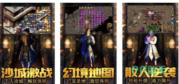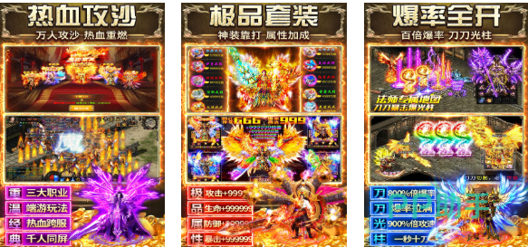 本作是款涵盖着热血攻沙玩法的精品多人传奇游戏,各种极品套装爆装几率还是挺高的,只要击杀一些史诗级的小怪和BOSS就可以爆出装备,全开的爆装几率带来的战斗快感更为硬核,万人攻城的特殊战斗体系也是爽到飞起,众多经典的传奇世界地图、任务系统等待玩家们上手体验,更多蛮有创意的玩法不会让传奇老玩家失望哟。