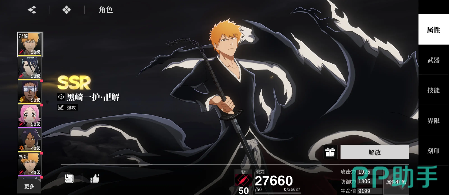 作为游戏中首位推出的限定角色,卍解一护不仅是剧情核心人物,更是斩击体系中的主力输出担当。其技能以近战爆发为主,虽然攻击范围较小,但单体伤害极高,连招顺畅且具备优秀的追击能力。面对高速移动的BOSS时,依靠瞬身技可实现精准打击,在虚化状态下整体机动性和输出效率进一步提升,是组建斩系阵容不可或缺的核心战力。