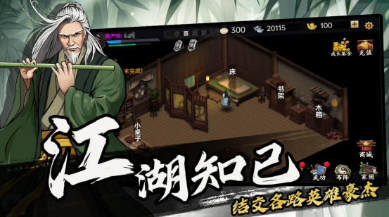 在起初大家只是一名江湖小虾米而已,在江湖世界中并没有特别高的知名度,更没有特别卓越的武功技能,但在逐渐探险各种精美场景,结识各路英雄的方式,成为真正的武侠英雄。各种绝世武功都可随意学习,而且将这些武功融合为一体的方式时,就能让自己成为无所不能的江湖英雄,数百位优秀的江湖豪侠都可成为你的合作好伙伴,一起在江湖上称雄称霸。