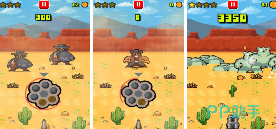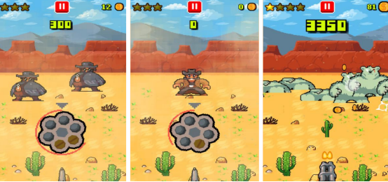 化身为西部牛仔的你,需要在枯黄的西部世界里到处去完成守护的任务,整个场景中会出现大量的强盗,而这些强盗都会对自己造成较大危机,大家必须要利用好每一发子弹,需要通过精准瞄准的方式,将眼前的强盗全部打败。只要瞄准之后就可以扣动扳机完成挑战。