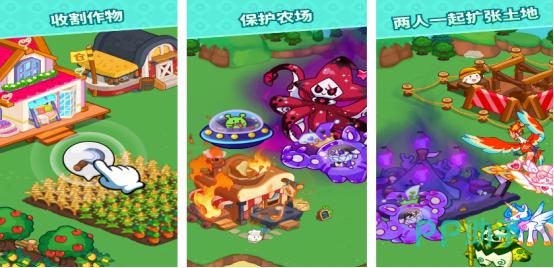 较大的农场需要合理规划,制定出种植区域以及养殖区域,两位玩家可同时在此游戏当中共同完成任务挑战,两位玩家分别化身为不同的人物角色,一种就是农场主,而另一种是战斗家,可在超大农场里共同养育特别漂亮的小宠物,或者共同种植各种农作物,每次在收获的季节时,一定会获得硕果累累的喜悦感,两位玩家各司其职,按照自己的任务去完成操作。