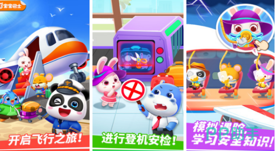 宝宝巴士所打造的游戏专为小朋友所设计,简直就是飞机乘坐指南。整个乘坐流程全部都在这里呈现,当到达机场之后,先去办理登机牌,要寻找到适合的窗口,千万不要迷路,其次,要完成安检大考验,携带着行李箱去登上飞机,当飞机准备起飞时,要根据相应的特色提示来调整好自己的座椅和安全带,这样的特色游戏专为小朋友所设计,让他们学习到乘坐飞机的种种安全知识。