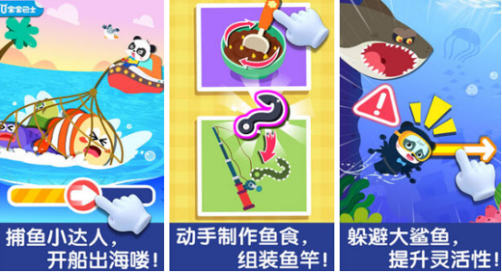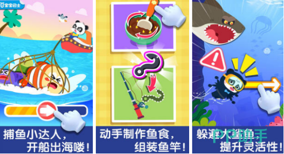 轻松锻炼你的手眼协调能力,只要动动手指就能钓取鱼竿和鱼饵,可以自由制作相应的鱼饵饲料,把玉米粒又或者是鱼儿爱吃的物品均匀的搅拌在一起放到鱼漂上,准备钓鱼。也可直接穿上潜水服到海底当中捕鱼,每当看到游动的鱼儿,小伙伴们一定要快速准备鱼叉并发射,最终抓住小鱼。