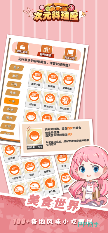 采用鲜明的二次元美术风格,《次元料理屋》不仅视觉表现力出众,更融合了角色养成与餐厅经营双重玩法。每位角色都有专属背景故事和互动对话,增强了沉浸体验。玩家可自由定制店铺类型,并通过解锁新菜谱提升经营效率,内容深度足够支撑长期游玩。