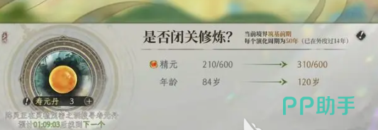 为了能够继续演化、修炼,就必须使用寿元丹来提升寿元上限。寿元丹每隔四小时自动恢复一个,即使离线也会计算时间,但是每次最多只能存十颗寿元丹,因此要合理使用,避免浪费。每次演化之前都要保证精元已经消耗完,否则精元就会溢出。修仙时代修为的提升过程就是不断的消耗精元、演化后再消耗、再演化,直到寿元达到极限不能演化为止。寿元是有限的,获得的精元也就有限,所以玩家要尽量寻找不需要消耗精元的灵气来源来突破这个限制。