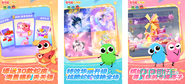作为传统贪吃蛇玩法的进化版本,该游戏融入了段位排名与皮肤成长体系,使游戏内容更加丰富多元。多种对战模式可供选择,尤其是限时狂欢赛,玩家需灵活拾取加速道具,在高速移动中完成反杀操作,考验反应力与走位技巧,带来紧张刺激的竞技体验。